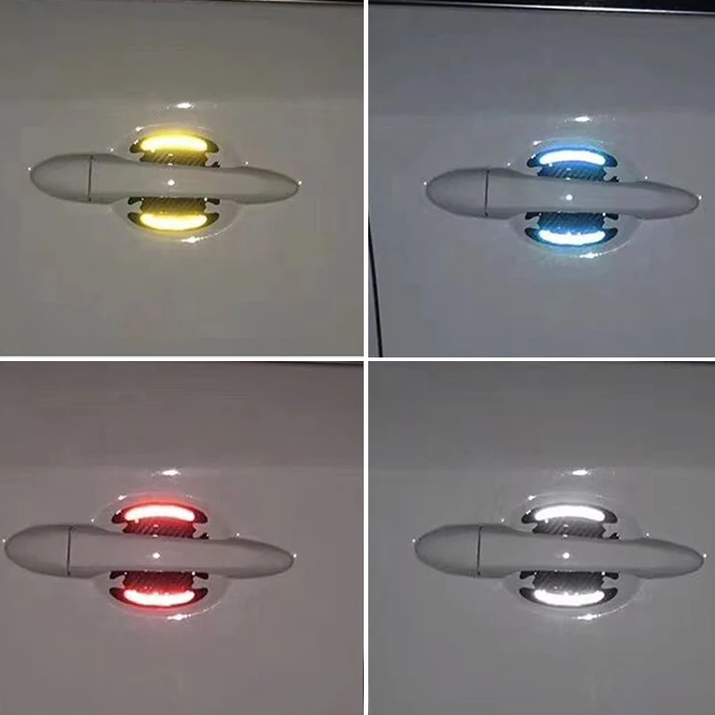 4 шт./компл. автомобиля со светоотражающими элементами из углеродного волокна дверная ручка защиты Стикеры s безопасности транспортных сред...