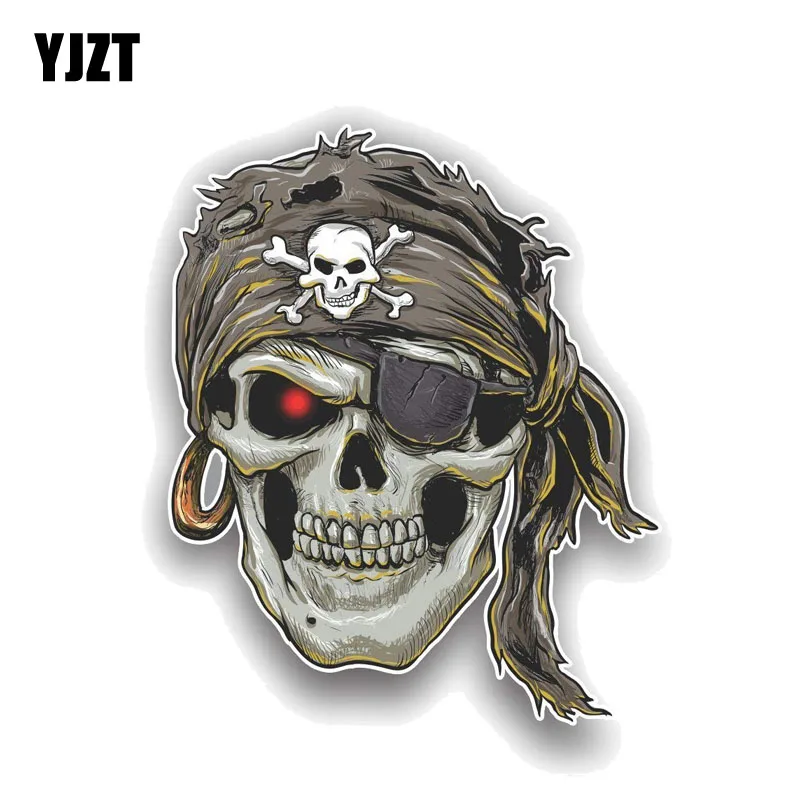 YJZT 11,7 см * 14,2 см Светоотражающие Забавный пиратский череп автомобиля Стикеры личности наклейка ПВХ 6-0153