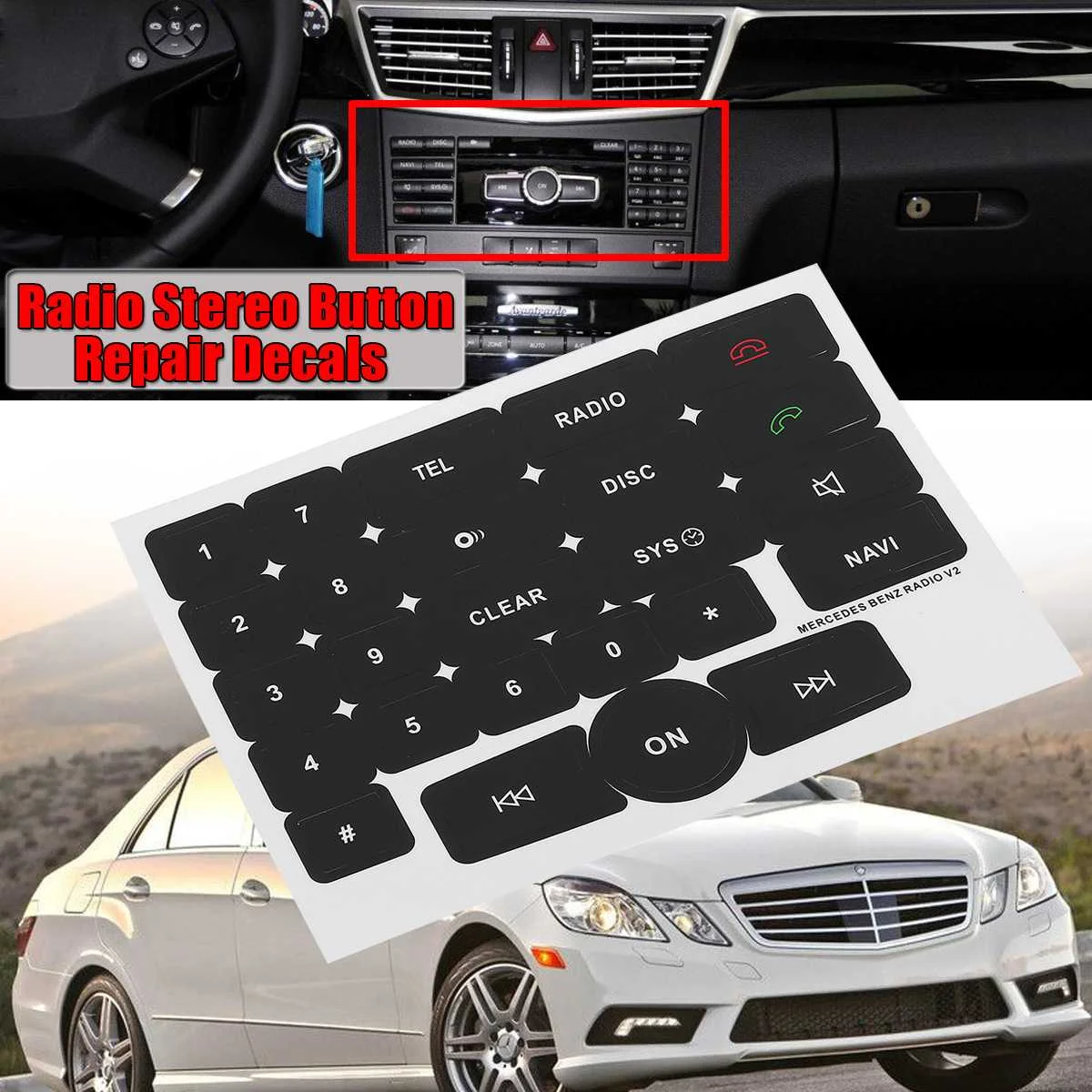 Черный автомобиль радиоприемник Кнопка стерео Ремонт Переводные картинки наклейки для Mercedes Benz для радио V2 ремонт наклейки исправить некра...