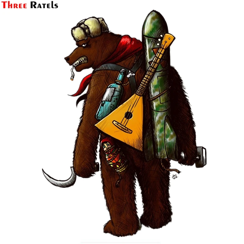 Three Ratels TZ-1529#20.7*15см наклейки на авто медведь СССР с гитарой и стратегическим ракетным двигателем наклейки на машину автонаклейка стикер