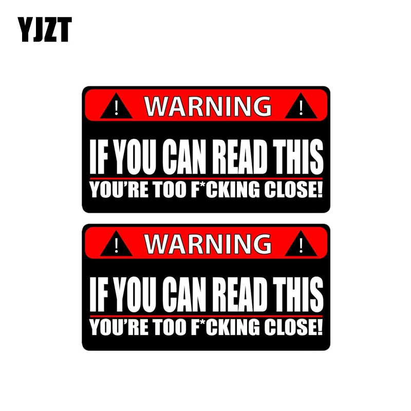 YJZT 2х 14 см * 7,1 см предупреждающая наклейка для автомобиля, если вы можете прочесть это, вы слишком близко ПВХ смешная наклейка 12-0791