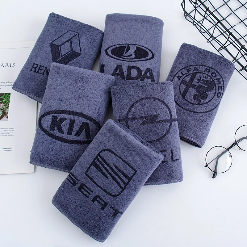 35*75 см наклейка с логотипом на автомобиль эмблемы мыть микрофибра Полотенца чистки автомобиля для Renault Opel alfa romeo стайлинга автомобилей