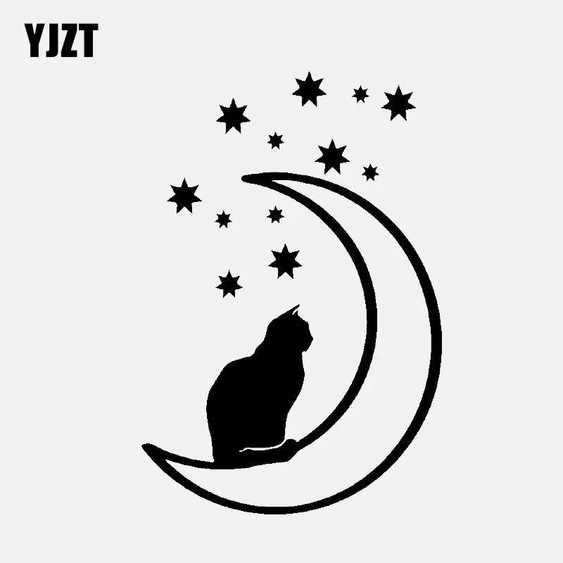 YJZT 10,1 см * 15 см Кошка Луна и звезды виниловая Автомобильная наклейка животное наклейка надувные фигурки животных черный/серебристый C3-0713