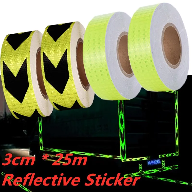 3 см x 25 м светоотражающая лента для автомобиля, наклейка для автомобиля, предупреждающий знак безопасности мотоцикла, самоклеющаяся лента, светоотражающая пленка, наклейка для стайлинга автомобиля