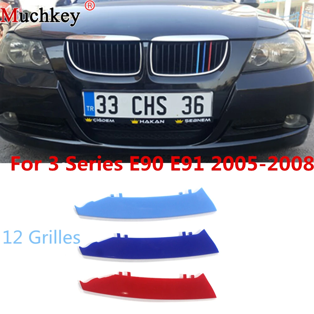 Автомобильная передняя решетка отделка полоски Гриль Крышка наклейка для BMW 3 серии 2005 до 2008 E90 E91 320 325 330 335 12 решетки 3D M Стайлинг