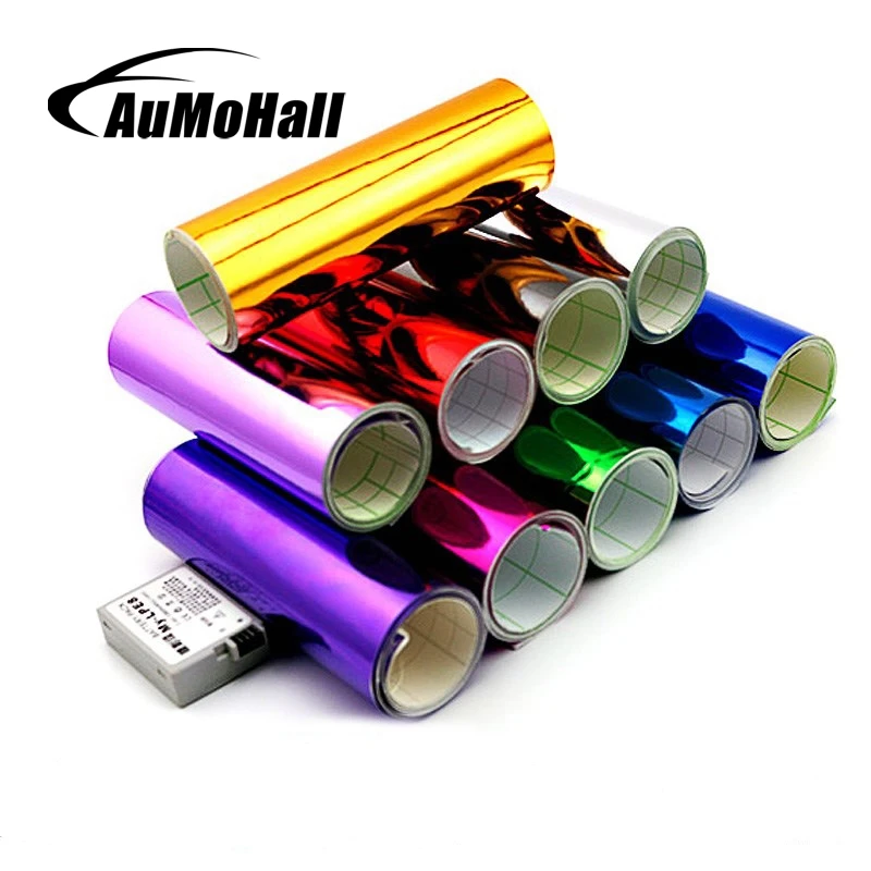 AuMoHall хромированная зеркальная виниловая пленка для автомобиля с пузырьковым свободным воздушным выпуском DIY wrap Лист пленка автомобиля Нак...