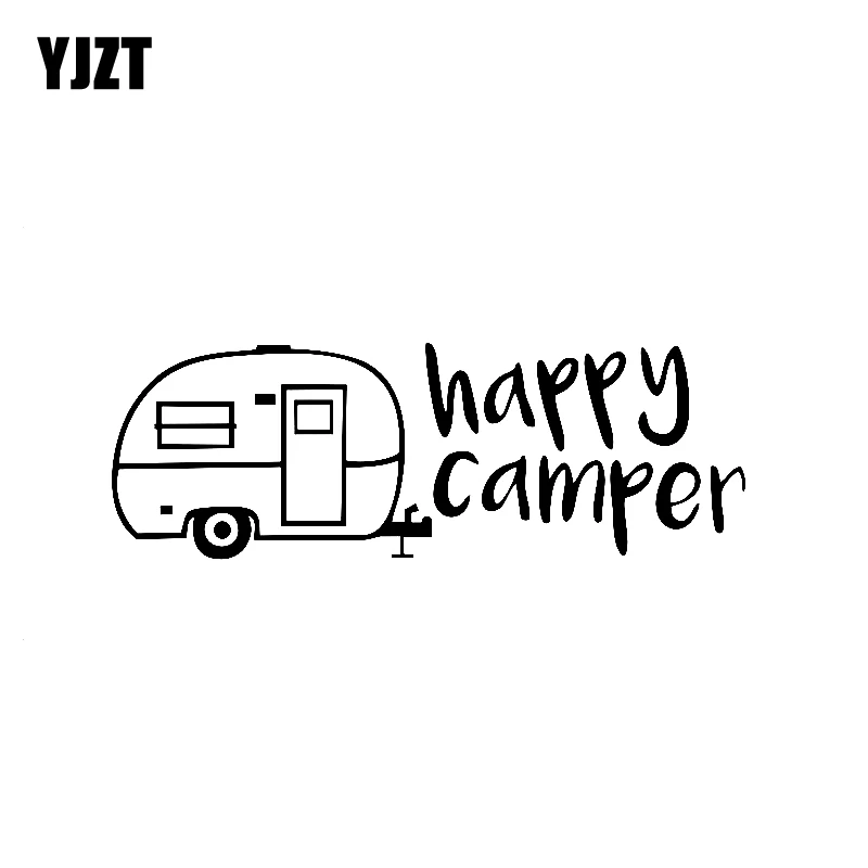 YJZT 17,1 см * 5,9 см мультфильм Happy Camper слово наклейка черный, серебристый цвет мотоциклетные винил автомобиля Стикеры C11-1340