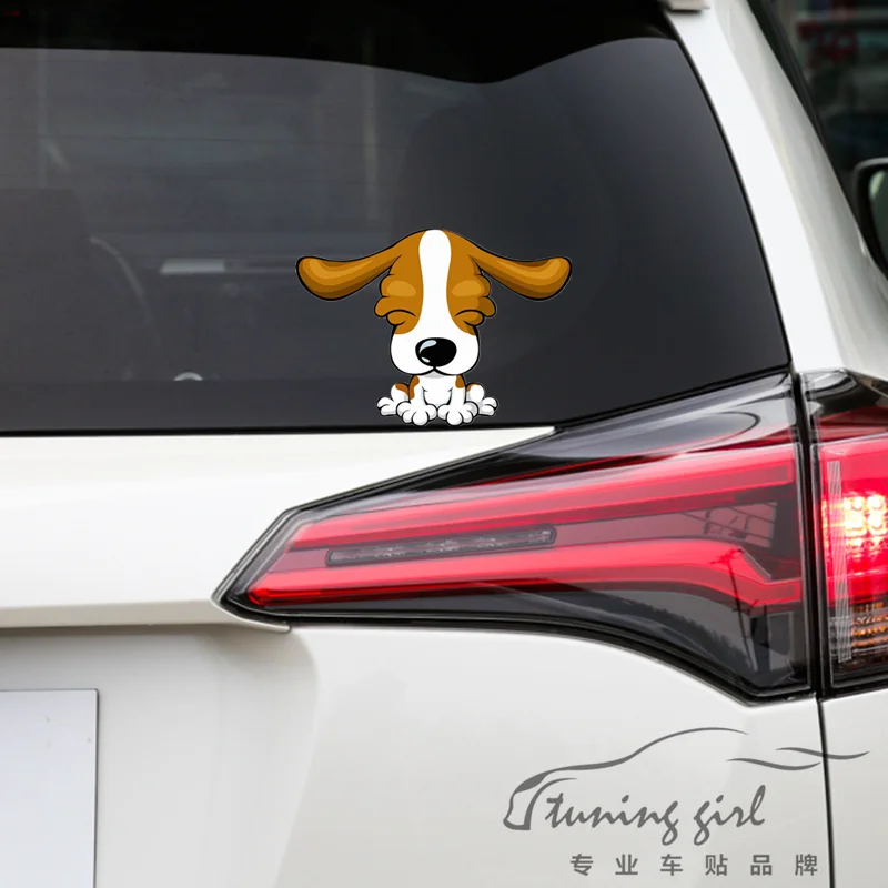 Наклейки на автомобиль собака Бигль длинные уши прекрасный мультфильм красочные творческие наклейки водонепроницаемый светоотражающие а...