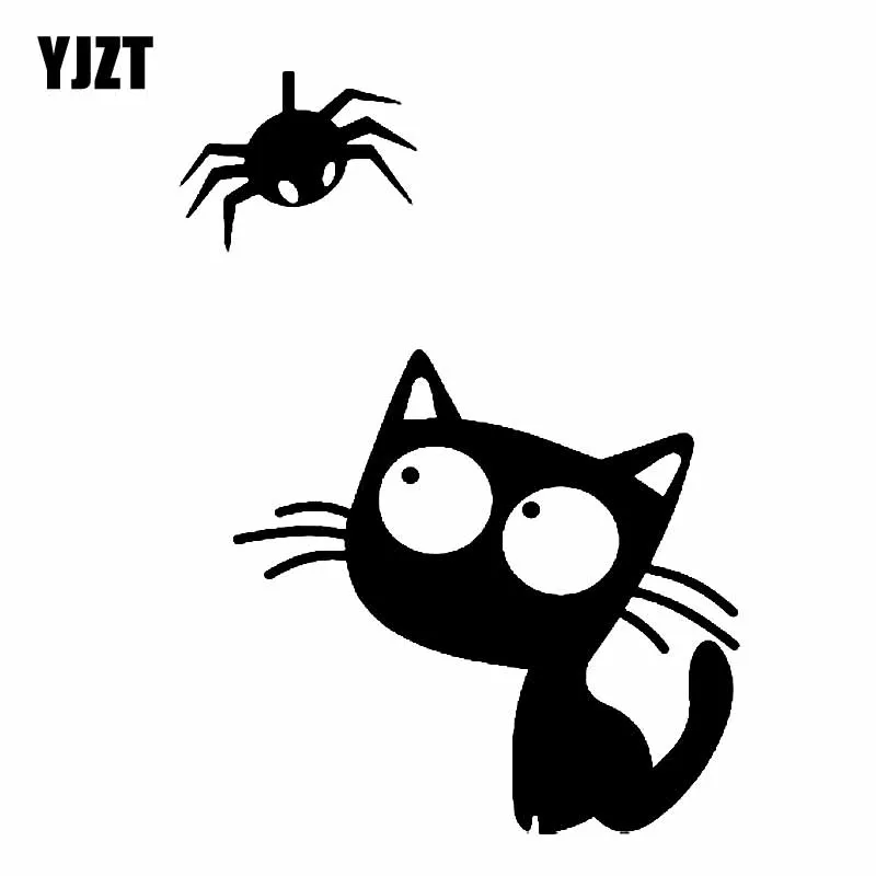 YJZT 15 см * 20 см кошка и паучок наклейка автомобиля винила Стикеры Прекрасный черный/серебристый C19-0200