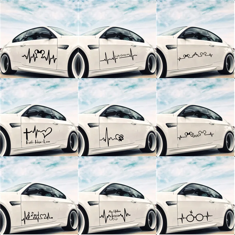 Забавные электрокардиограф музыкальные наклейки для автомобиля забавный мотоцикл искусственная кожа для автостайлинга наклейки на автом...