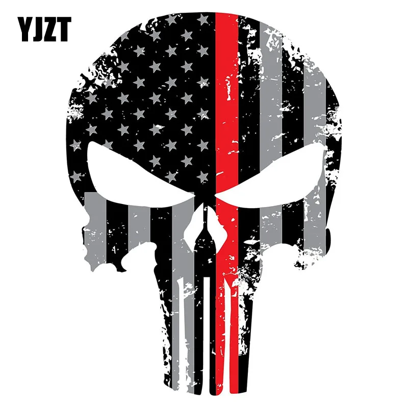 YJZT 10 см X 14 см Каратель красная линия череп потрепанный приглушенный Флаг США забавные персональные наклейки для автомобиля C1-6010