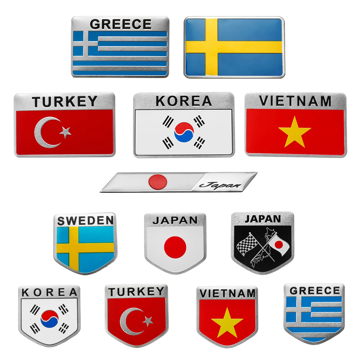 Турция, Швеция, греческая Корея, Вьетнам, Япония, 3D Автомобильная наклейка, флаг, наклейка, эмблема, значок из алюминиевого сплава