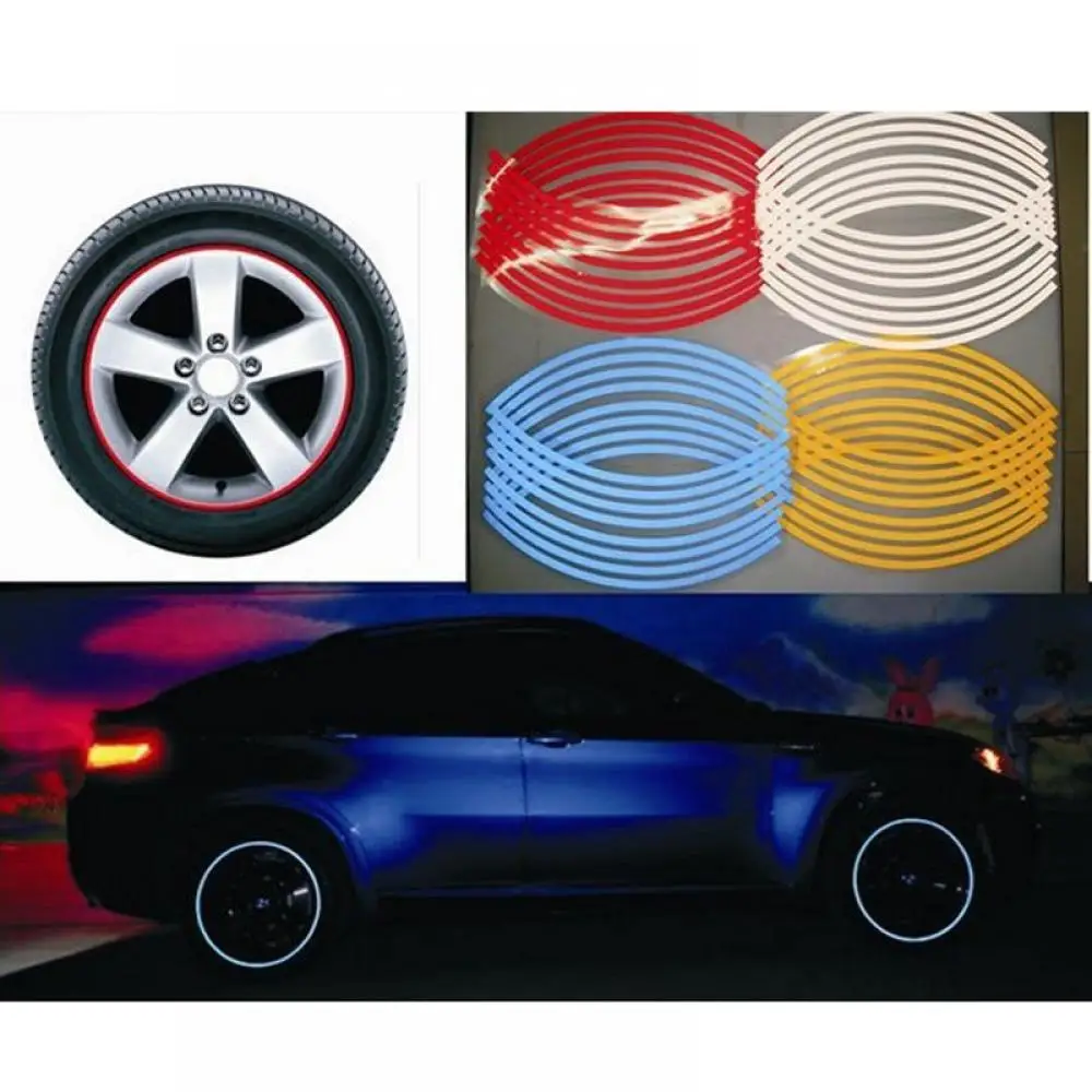 Новинка 16 шт. полоски, наклейки на колеса и наклейки Светоотражающие Обода ленты велосипед мотоцикл автомобиль ленты 7 цветов Стайлинг авто...