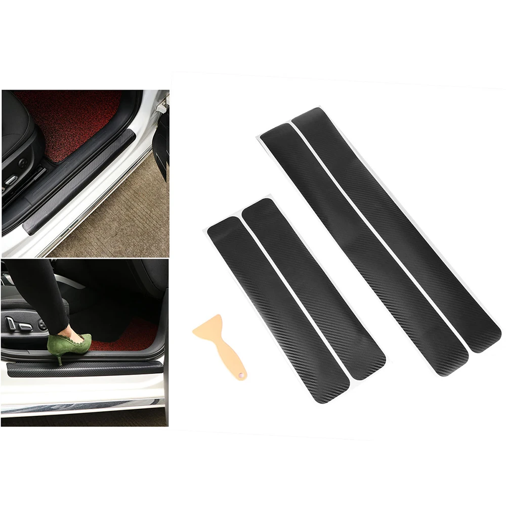 AOZBZ 4 шт. Защитные пленки для порога автомобиля с защитой от царапин углеродное волокно 3D наклейка с скребком для всех автомобилей