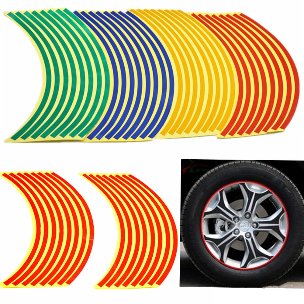 16 полосы велосипед, автомобиль, мотоцикл колесо шина Светоотражающие Обода наклейки и Декоративные переводные наклейки 18 "4 цвета стайлинга...