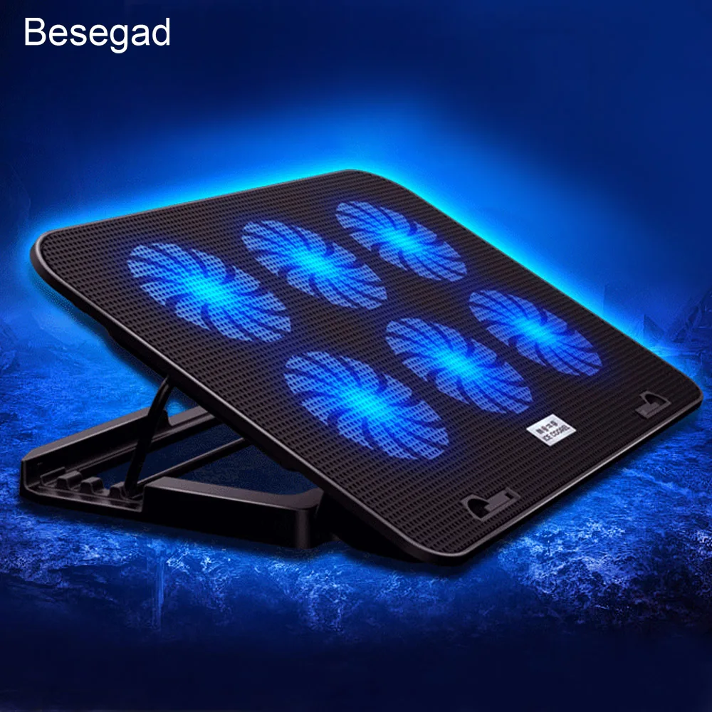 Тихий теплоотвод Besegad, два порта USB, регулируемая скорость ветра, охлаждающий вентилятор, подставка для ноутбука, ноутбука, ПК, размер ниже 14 дюймов