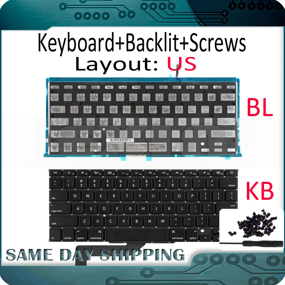 Новый ноутбук A1398 Английский США клавиатура для Macbook Pro retina 15 "A1398 США клавиатура ж/Подсветка подсветкой + винты 2012-2015 год