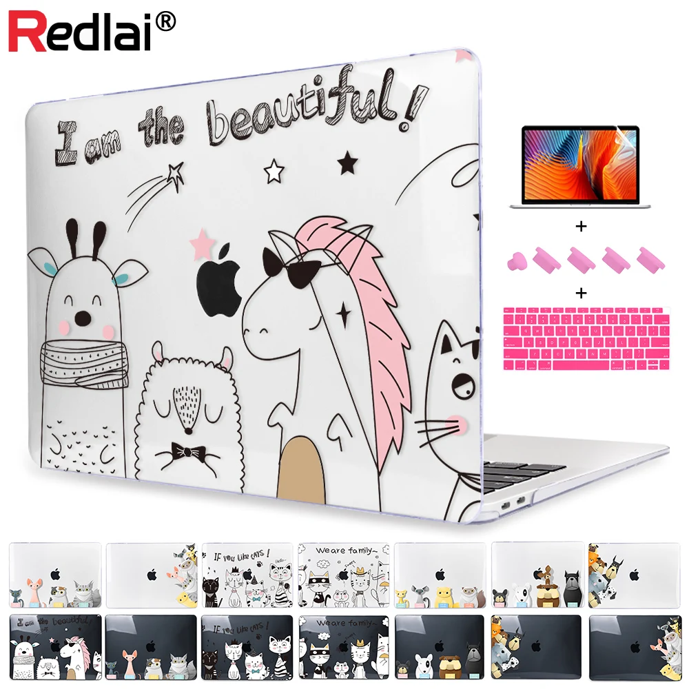 Redlai чехол для MacBook 2018 Новый Air 13 A1932 Pro retina 12 13,3 15,4 "с Touch bar A1989 A1990 милые животные жесткий чехол