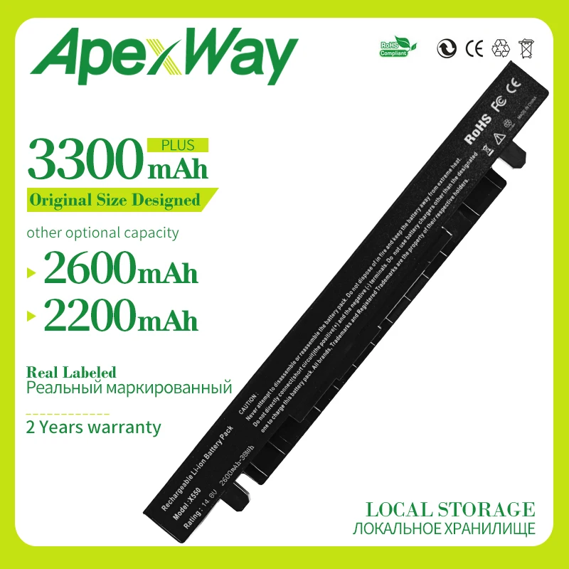 Apexway Батарея для Asus A41-X550A A450 A450L A550 A550C A550V F450 F450C F450V F550C F550V K450C K550C P450 X450 X550 X550V