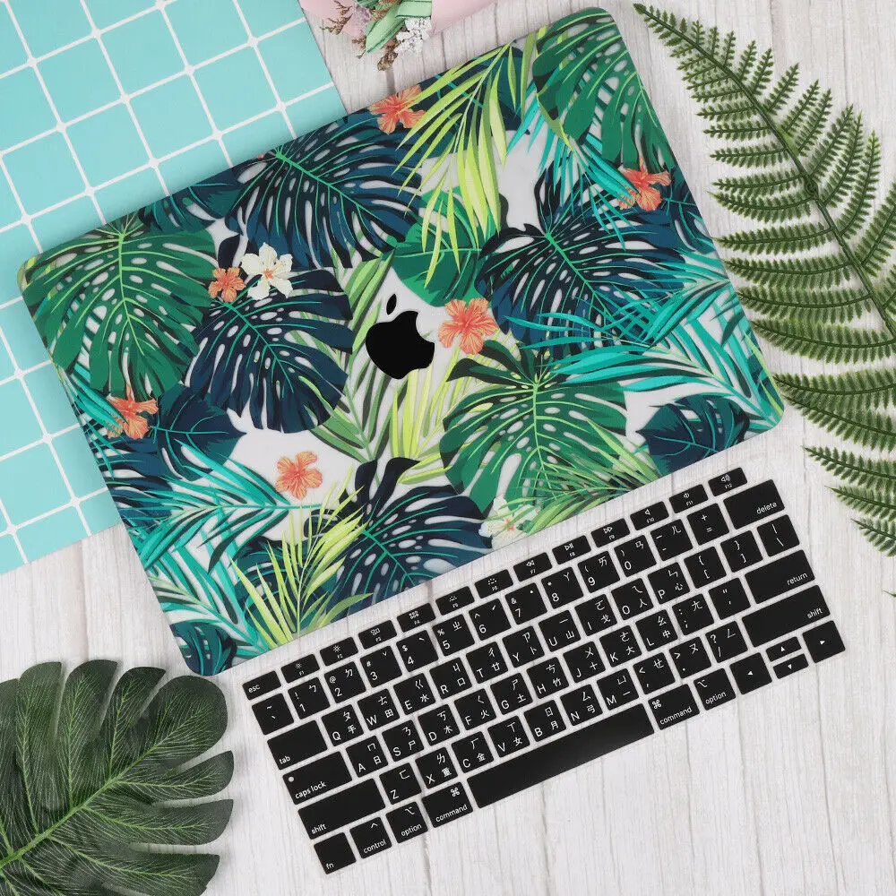Прорезиненный чехол с узором в виде листьев, жесткий защитный чехол для Macbook Pro 13 A2159 A1900 A1989 Touch Bar Air 11 13 15