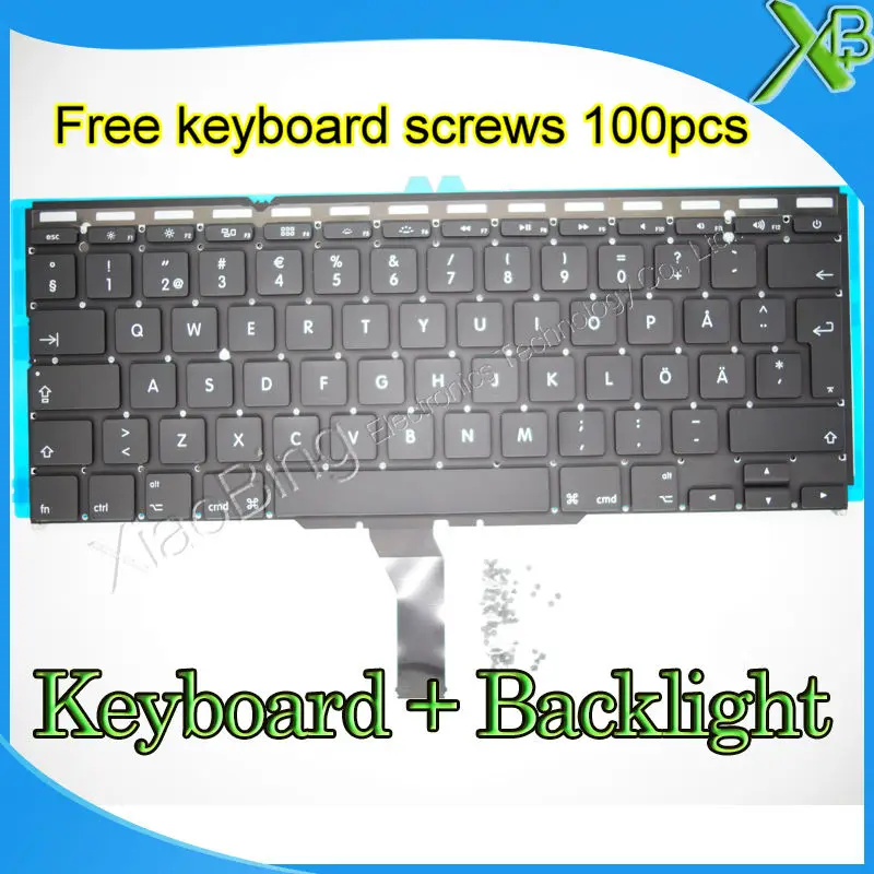 Фирменная Новинка SE Швеции шведская клавиатура + Подсветка подсветкой + 100 шт Клавиатура винты для MacBook Air 11,6 "A1370 A1465 2010-2015 лет