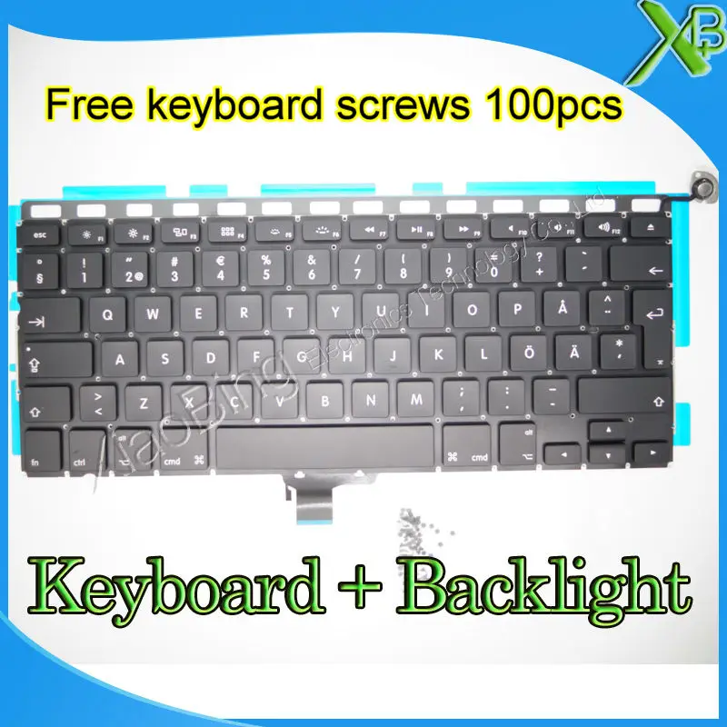 Фирменная Новинка для MacBook Pro 13,3 "A1278 SE Швеции шведская клавиатура + Подсветка подсветкой 100 шт Клавиатура винты 2008-2012 лет
