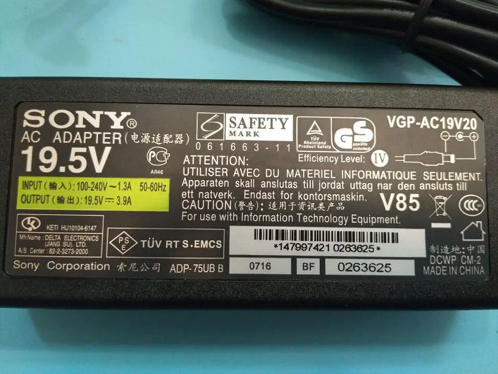 Новый оригинальный 19.5 В 3.9a AC Адаптеры питания для sony vaio vgp-ac19v37 vgp-ac19v38 vpcw VPC-W