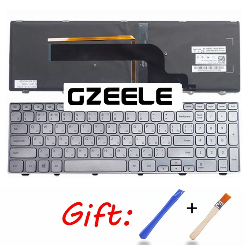 Русская клавиатура для DELL Inspiron 15-7000 серии 7537 RU Клавиатура с подсветкой с серебряной оправе