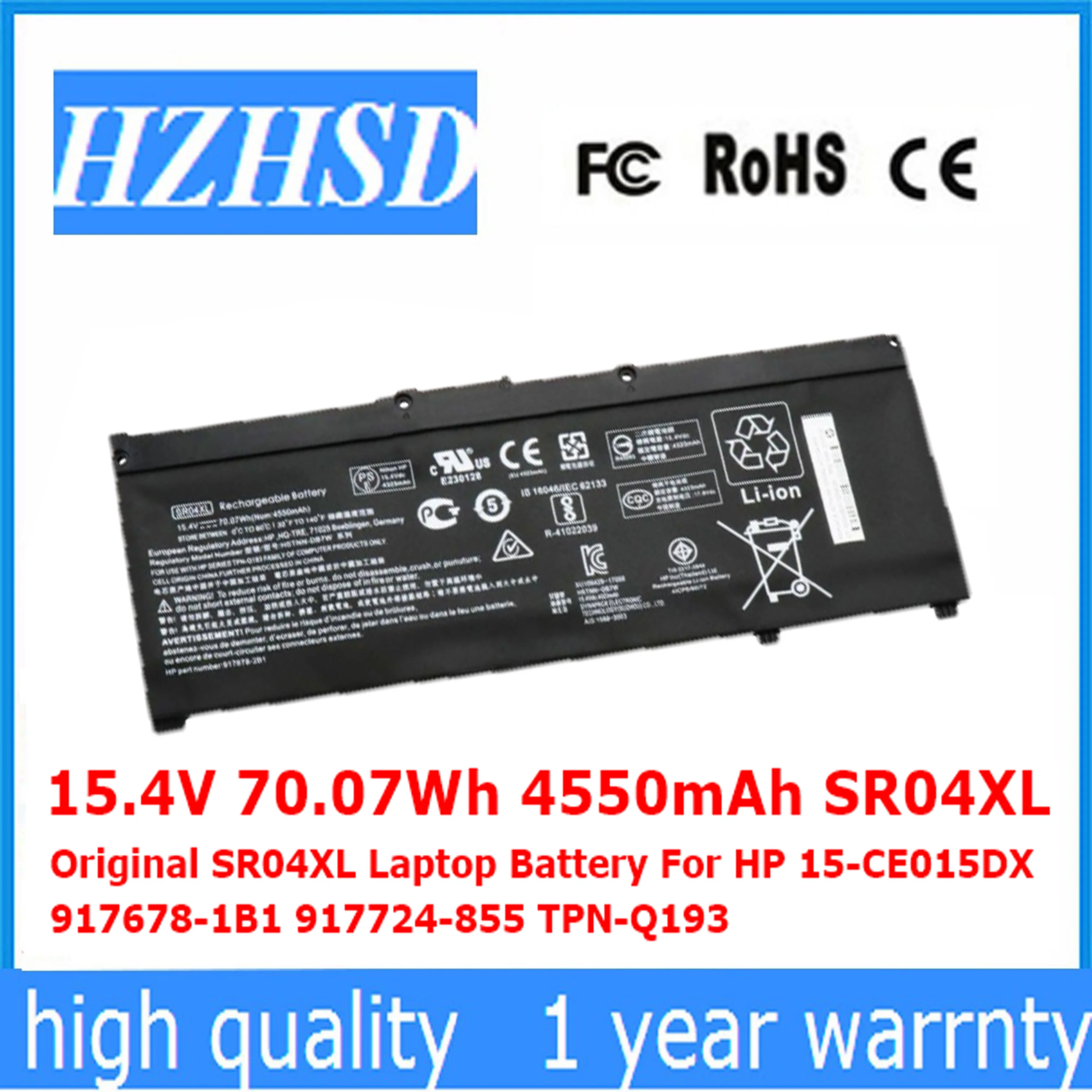 15,4 V 70.07Wh 4550 мА/ч, SR04XL оригинальный SR04XL Аккумулятор для ноутбука HP 15-CE015DX 917678-1B1 917724-855 TPN-Q193