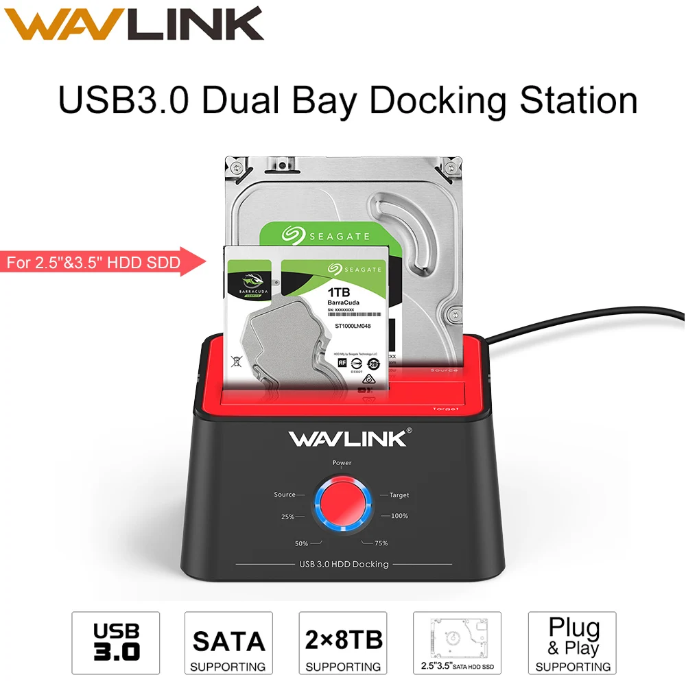 Wavlink USB 3,0 SATA двойной отсек HDD док-станция внешний HDD и SSD 8 ТБ HDD Корпус Автономный клон для 2,5 & 3,5 дюймов SATA