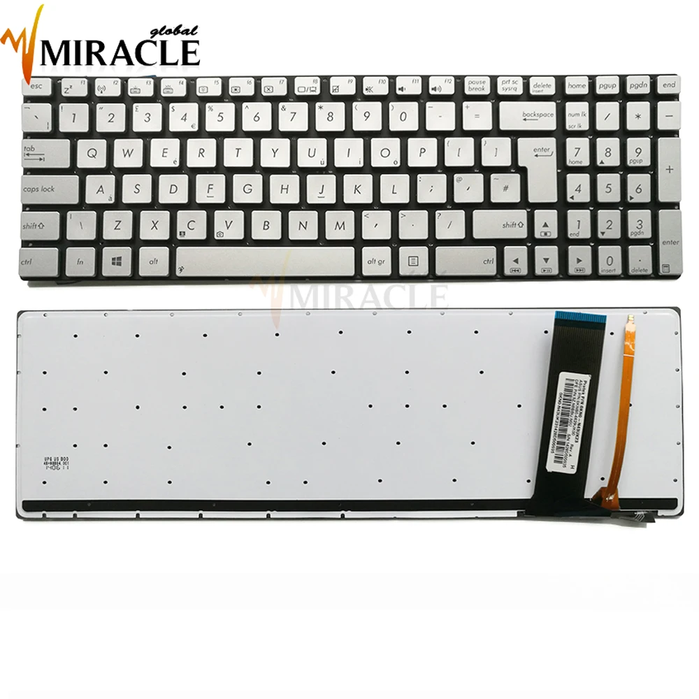 Ремонт вам жизнь Клавиатура для ноутбука Asus N550 Q550 N76 Великобритании YOOX с подсветкой макет новый оригинальный серебристый