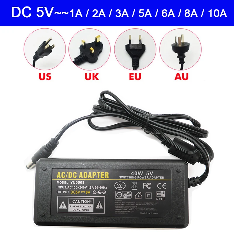 DC 5V светодиодный адаптер питания AC100-240V светодиодный светильник источник питания 1A 2A 3A 5A 6A 8A 10A светодиодный трансформатор с вилкой