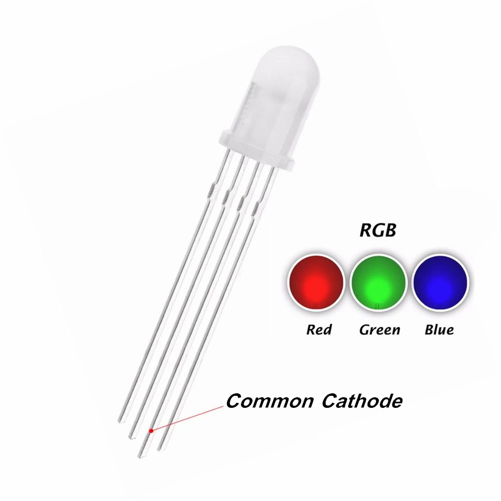 50 шт. 5 мм RGB DIP LED диффузный общий катод F5 красный зеленый синий триколор лампы 4 шпильки световые бусины