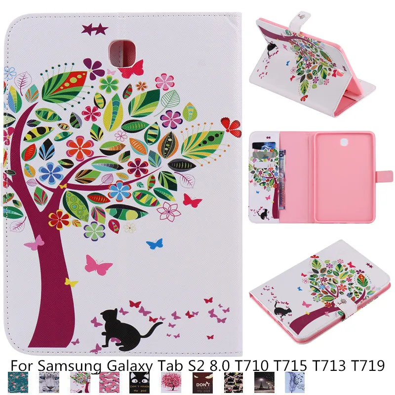 Детская кошка дерево узор чехол для Samsung Galaxy Tab S2 8,0 T710 T715 T713 T719 Чехол Smart принципиально планшет из искусственной кожи Shell