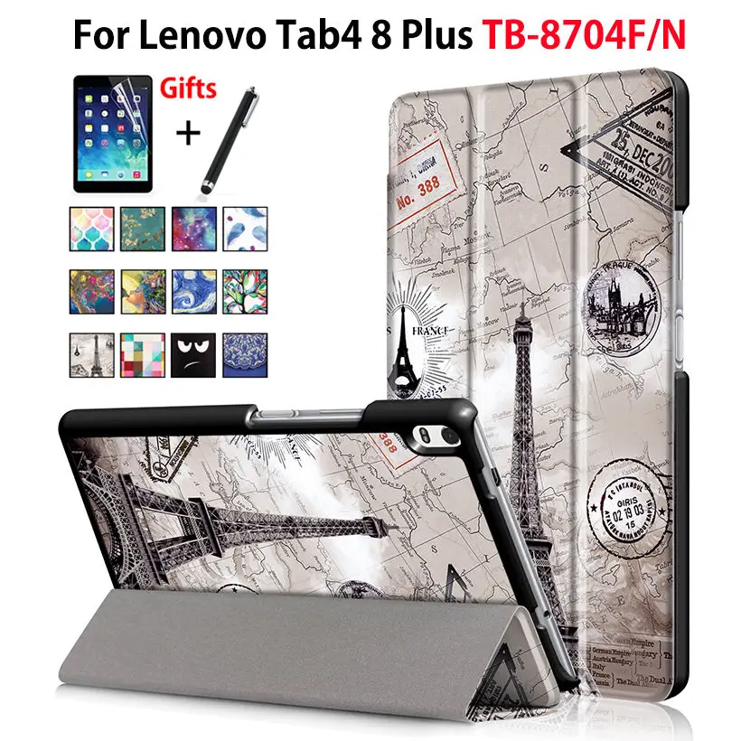 Чехол для lenovo Tab4 8 плюс TB-8704X TB-8704F TB-8704N Smart Cover принципиально Tablet PU складной Slim Flip Стенд кожи корпус + пленка + ручка