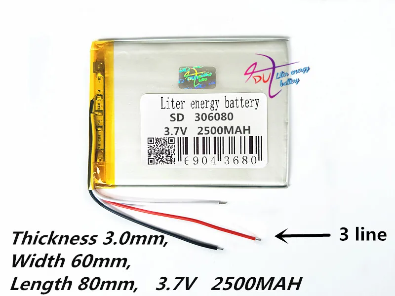 3 линии литий полимерный аккумулятор 306080 3,7 в 2500 мАч любовь посадки КПК smart планшеты компьютер gps DVD DVR 3,7 полимерный