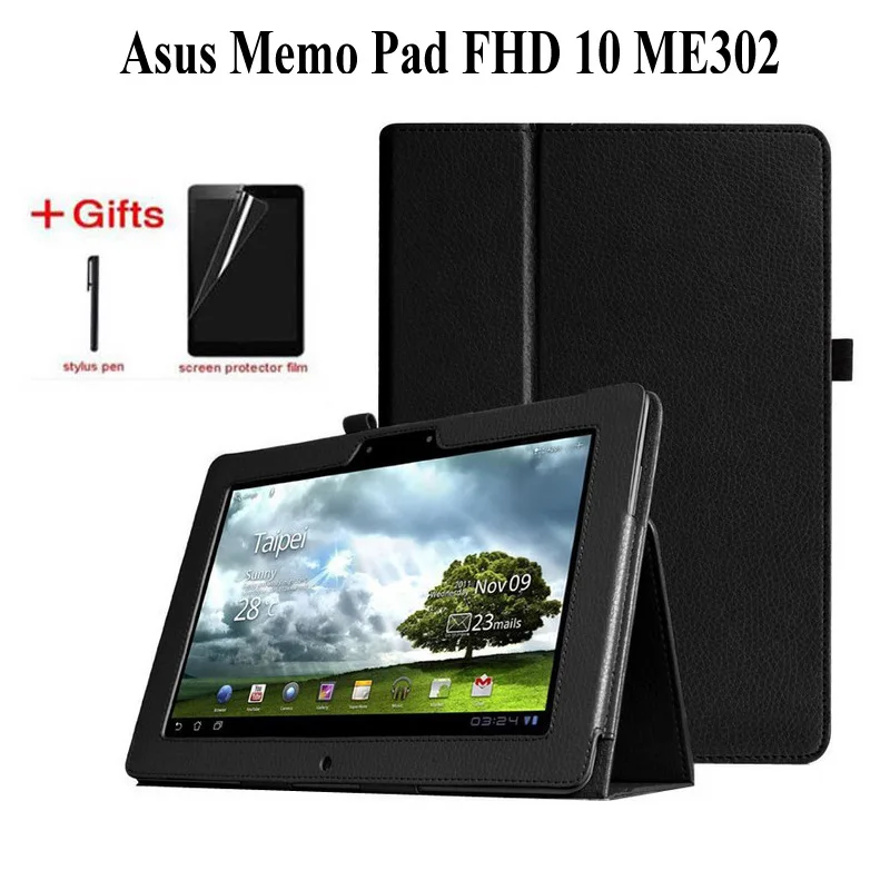 Litchi Искусственная кожа чехол для Asus Блокнот FHD 10 ME301T ME302 ME302C ME302KL 10,1 планшет Искусственная кожа Чехол + пленка + ручка
