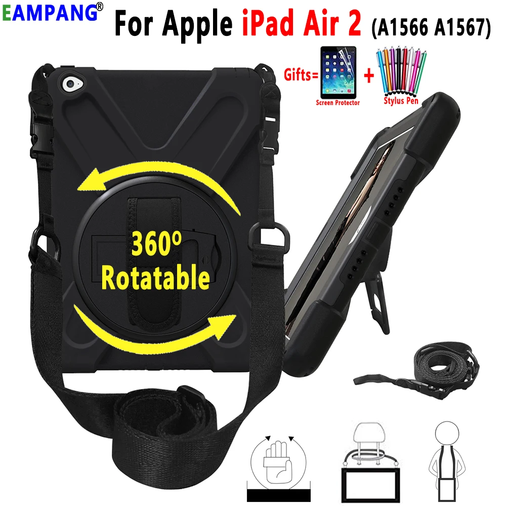 Вращающийся на 360 градусов защитный противоударный детский безопасный Чехол для Apple iPad Air 2 9,7 iPad 6 A1566 A1567 чехол на плечо