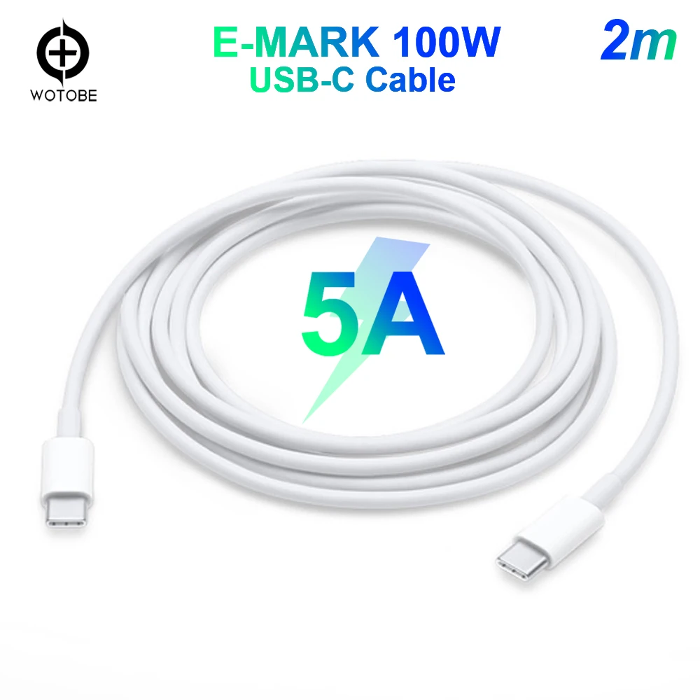 USB-C кабель для зарядки 2 м USB2.0 480 Мбит/с 5A E-MARK 100 Вт Быстрая зарядка подходит для MacBook и 29 Вт 30 Вт 61 Вт 87 Вт USB-C адаптер питания