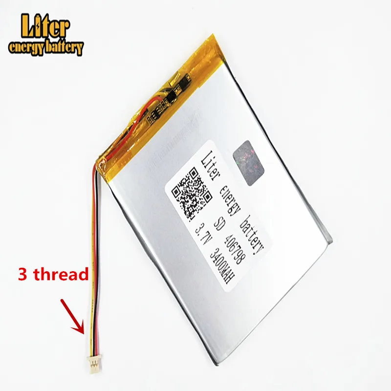 3 нить полимерный аккумулятор 3400mah 3,7 V 406798 умный дом MP3 колонки литий-ионный аккумулятор для dvr, gps, mp3, mp4, сотового телефона