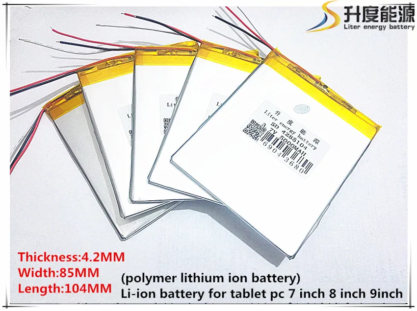Бесплатная доставка 3,7 в 5000 мАч 4285104 3 провода литиевых планшеты PC Батарея с защитой доска полимерный
