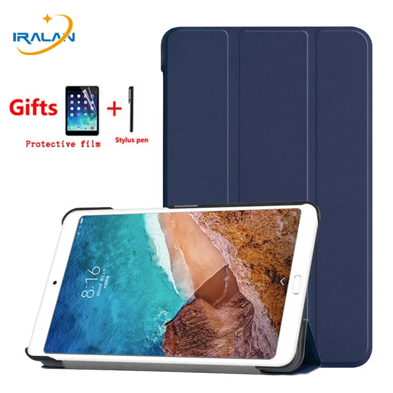Тонкий из искусственной кожи 3 раза Стенд Обложка для сяо mi Pad 4 8,0 2018 Магнитная Смарт Tablet чехол для mi pad 4 8,0 дюйма + Экран пленка + ручка