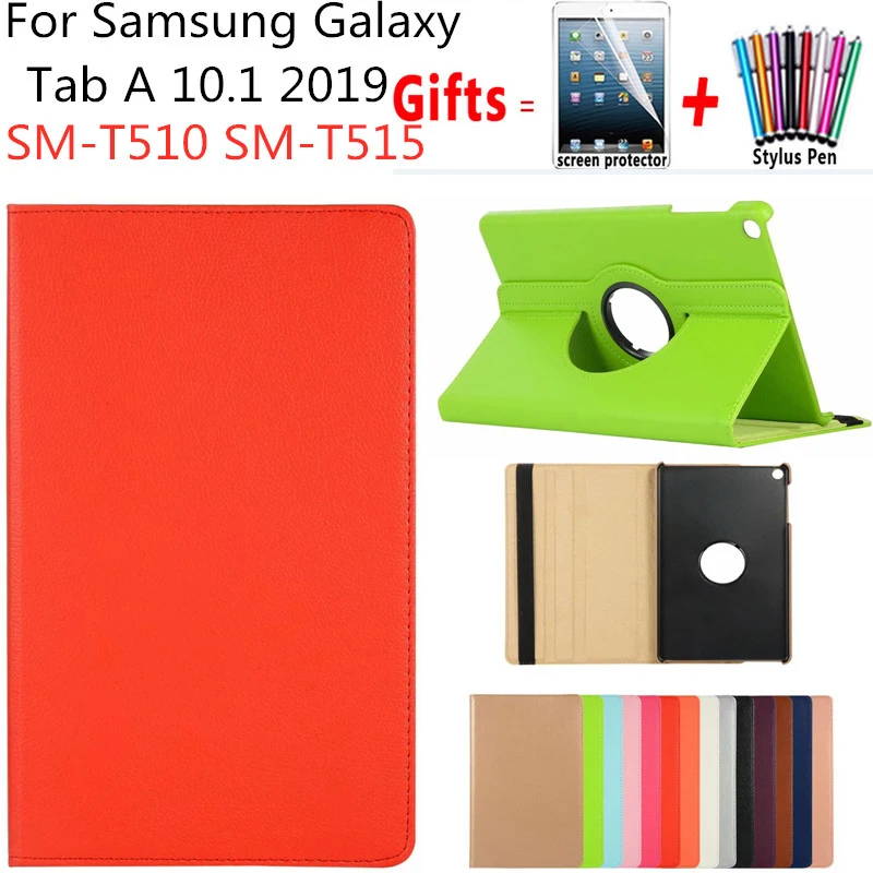 360 Вращающийся чехол для Samsung Galaxy Tab A 10,1 2019 T510 T515 Стенд PU кожаный чехол для SM-T510 SM-T515 10,1 дюймов Чехол + пленка + ручка