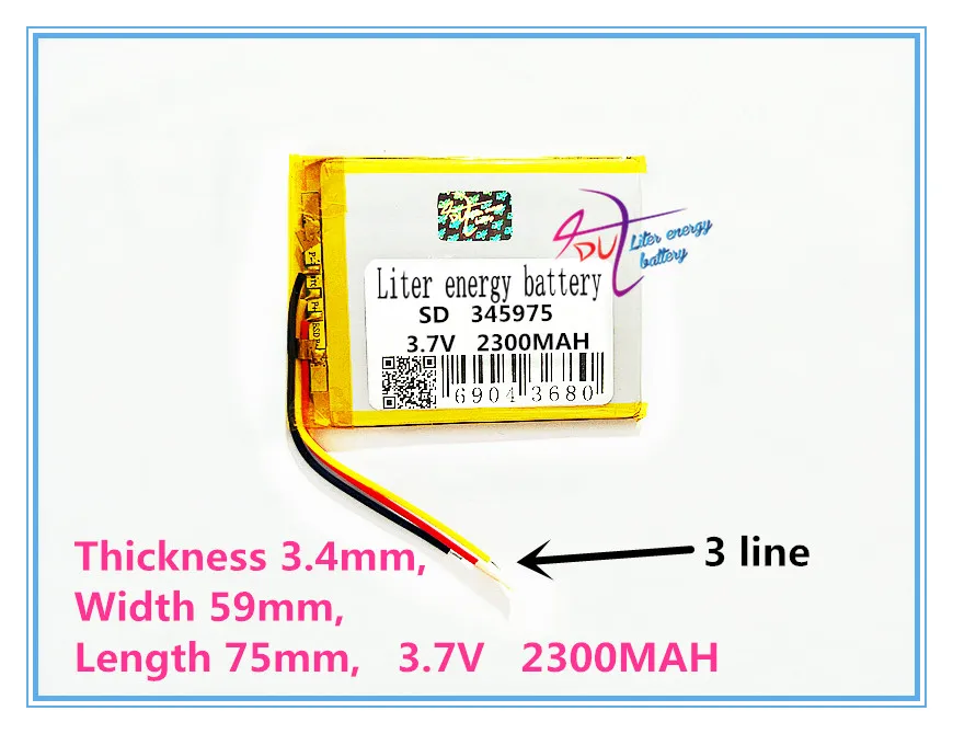 3 линии 345975 3,7 в 2300 мАч перезаряжаемый литий-полимерный батарея для gps DVR электронная книга планшеты Дополнительный внешний аккумулятор Wexler к...