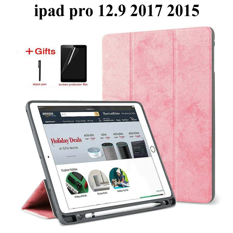 Тонкий смарт защитный чехол для iPad Pro 12,9 2017/2015 Funda с карандашом держатель Чехол для iPad Pro 12,9 чехол для планшета + пленка + ручка
