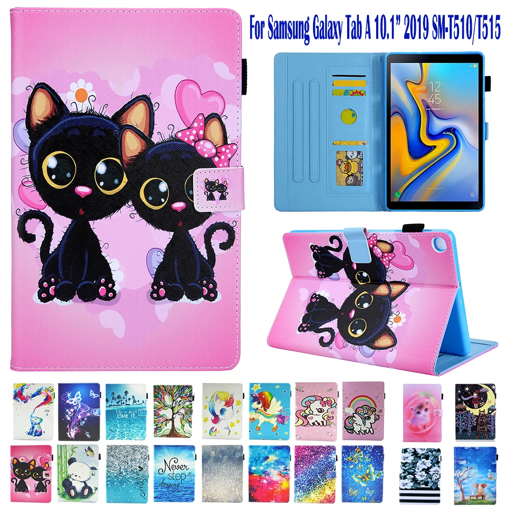 Чехол для Samsung Galaxy Tab A 10,1 "дюймов 2019 SM-T510 SM-T515 10,1 дюймов Funda PU кожаный Стенд планшет модный мультяшный чехол