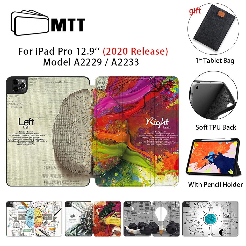 Чехол MTT для iPad 4th Gen Pro 12,9 ''2020 Release A2229 A2233, мягкий чехол из ТПУ с откидной крышкой из искусственной кожи, умный защитный чехол для планшета
