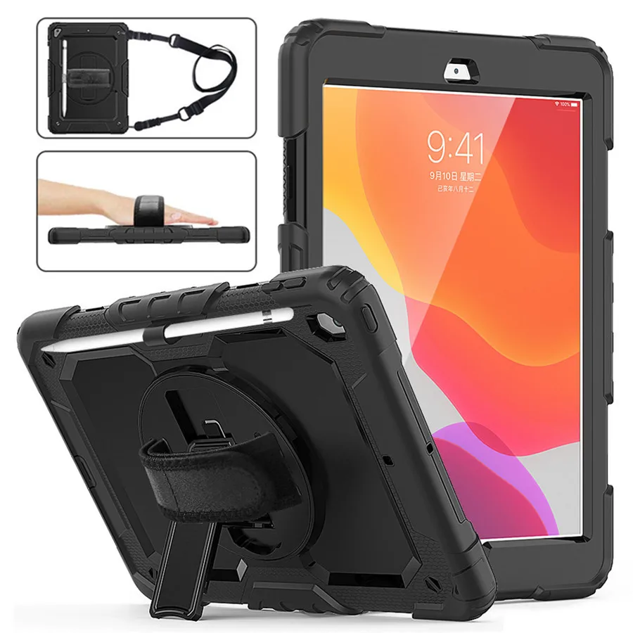 Для iPad 10,2 2019 чехол 3-Слои гибридная защита от падения карандашница Обложка для iPad 7th поколения A2200 A2197 поворот ремешок на руку