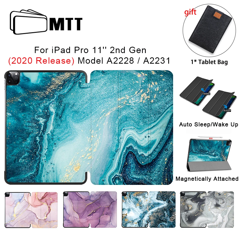 MTT 2020, Чехол для iPad Pro, 11 дюймов, тонкий из искусственной кожи, откидная подставка, умный чехол, мраморный защитный чехол для планшета, модель A2228 A2231