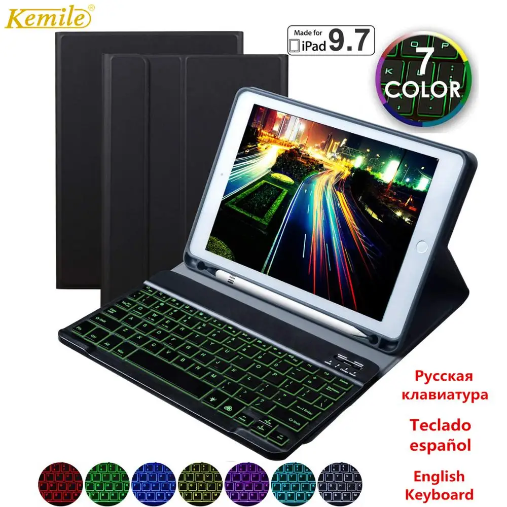 Испанский Русский чехол с подсветкой клавиатуры для iPad 9,7 2017 2018 5th 6th Air 1/2 9,7 Pro 9,7 чехол funda испанская Русская клавиатура